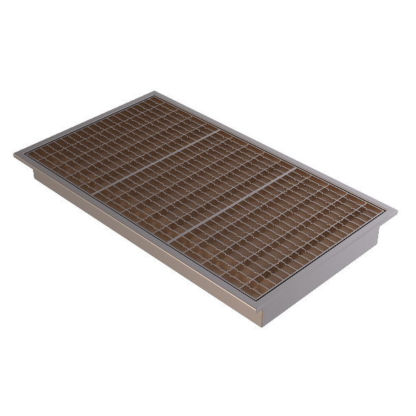 SG Equipments Drain Gratings are made from AISI304 Stainless Steel. The Drain gratings consists of, a Trough of 1.5mm THK, a Perforated Strainer of 1.2mm THK and an Anti-Slip Grating on top. The Anti-Slip Grating Outer frame is made out of 25x4mm flat, the internal cross members of the grating are made from 25x3mm flats, inter locked vertically and welded together. Stainless steel split end strips are provided at corners of the trough for concreting to the floor.