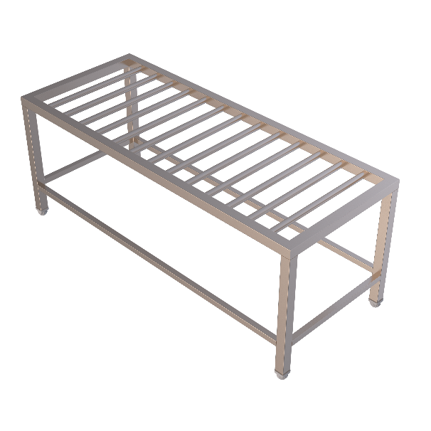 3. Pot Wash Rack – Pot Wash Racks are made entirely from pipes. The four Legs are Round Pipe Ø38×1.5mm. The cross members joining the legs are Ø32×1.5mm. The internal cross members joining the external cross members are Ø25×1.5mm spaced equidistantly.