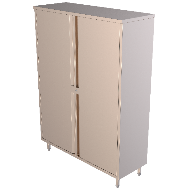 Tall Storage Units made from AISI304 Food Grade Stainless Steel. Doors are equipped with formed handles, Hettich Soft Close Hinges and lock. Legs are provided with adjustable nylon bullet feet. The bottom shelf and the intermediate shelves are 1.2mm THK, side, rear, and top panels are 1mm THK. The Doors are 1.2mm THK and reinforced with stiffeners of 1.2mm THK.
