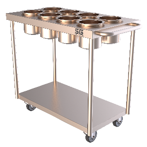SG Equipments manufactures various type of trolleys to meet the need of moving different commodities with in a kitchen. SG Equipment range of trolleys includes, Utility Trolleys, Platform Trolleys, Masala Trolleys, Plate Trolleys and Vegetable Crate Trolleys. All Trolleys are made from AISI304 Food Grade Stainless Steel and provided with heavy duty nylon or rubber castor wheels according to requirement. Half of the number of castor wheels on a trolley will be with brakes. The Platform Trolleys and Vegetable Crate Trolleys will be provided with rubber bumpers in the corner.